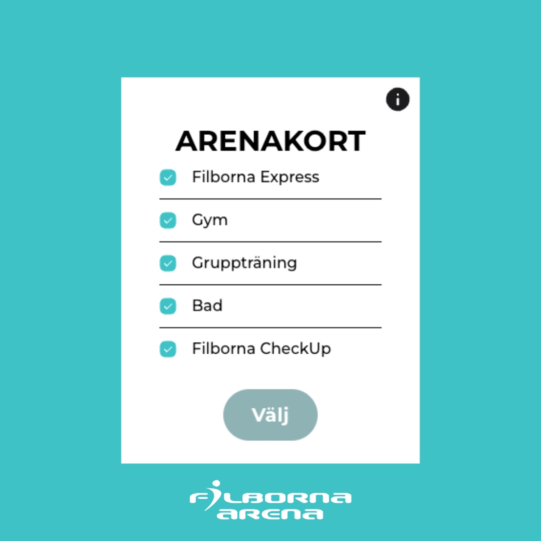 Arenakortet är vårt främsta medlemskap, där allt på Filborna Arena ingår. Gym, gruppträning, simhall, Filborna Express och nu Filborna CheckUp.